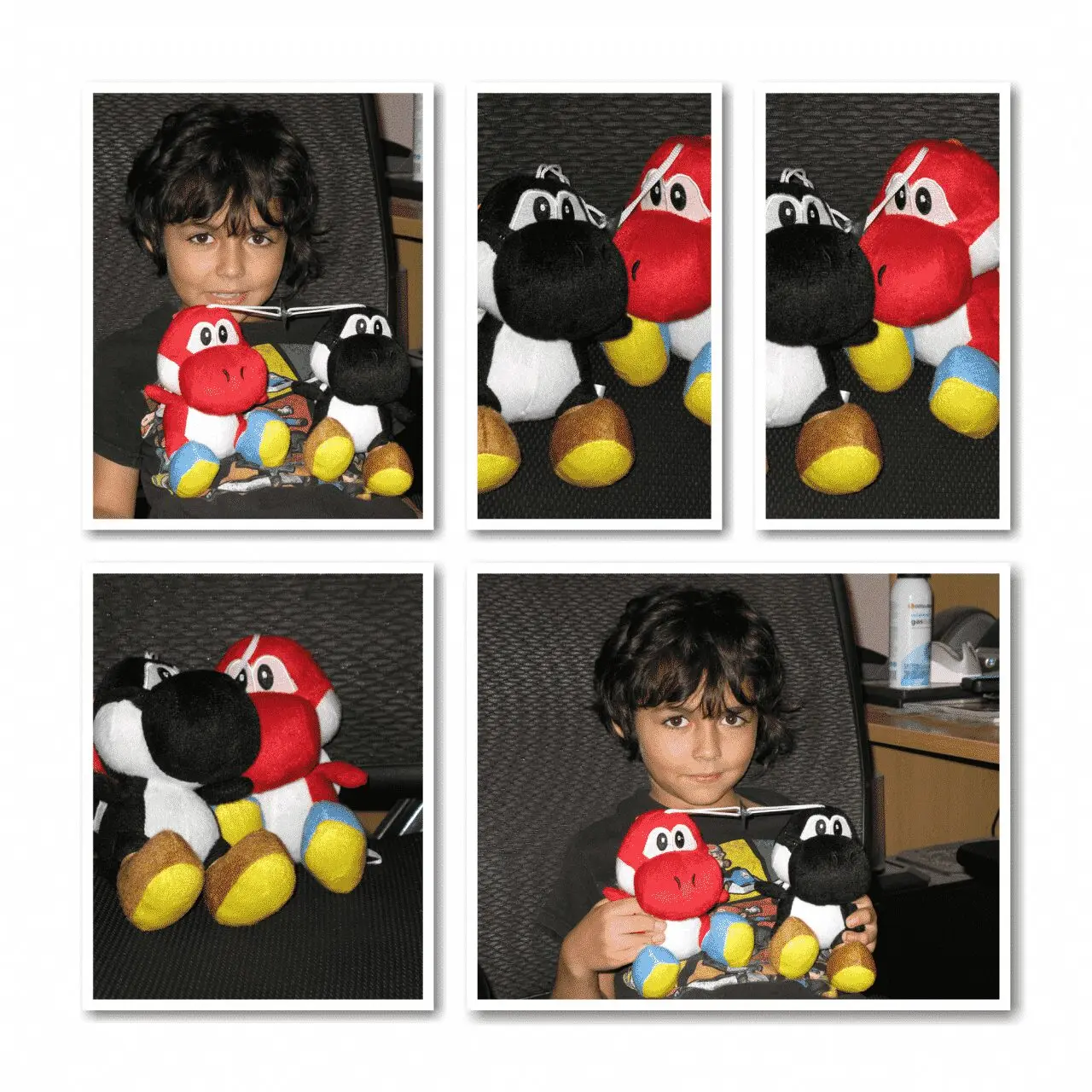 Here’s one of the collages I made using a handful of photos of Drama King and his stuffed Yoshis.
