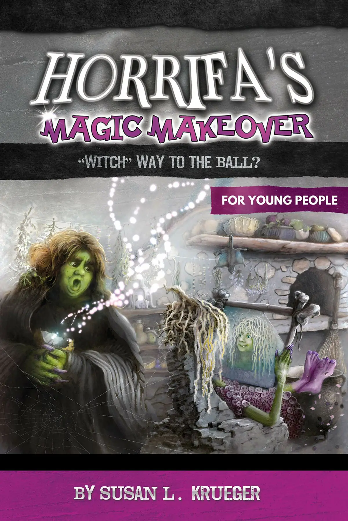 Horrifa, a headstrong young witch, has her heart set on attending a mortal ball, hosted by a handsome prince at his nearby castle. Although her mother, Dragunda, is appalled that a sorceress would aspire to mortality, Dragunda finally agrees to help her fairytale-struck daughter transform herself into a blond haired, blue-eyed beauty, complete with a lacy pink gown. As Horrifa’s Magic Makeover unfolds, Dragunda’s spellbound innovation results in complete pandemonium dashing Horrifa’s hopes to meet the prince of her dreams. Despite her disappointment, Horrifa finally realizes that being true to herself scales, warts and all is more important than her mortal ambitions.